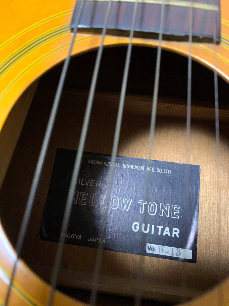 春日楽器の12弦なんですが、トラスロッドの調整が六角ナットだったり、ゼロフレット仕様だったりするところを見ると結構古そう。